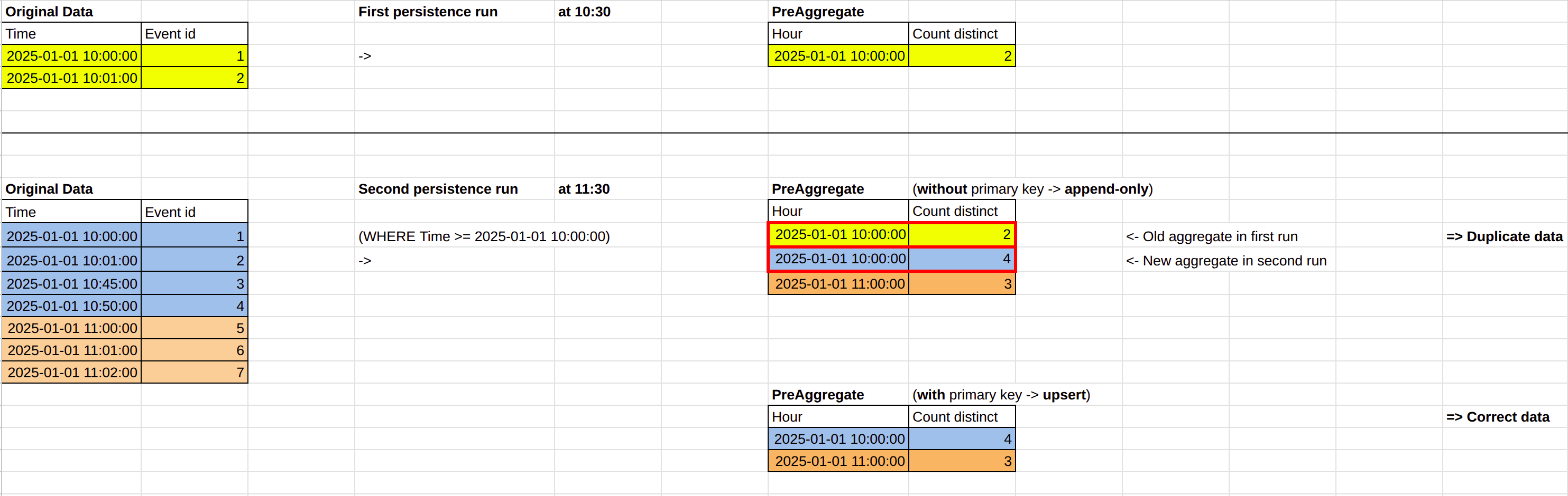 Holistics generates a key for each Pre-Aggregate based on its semantics. When running a Persistence, Holistics would associate that key to the persisted table.