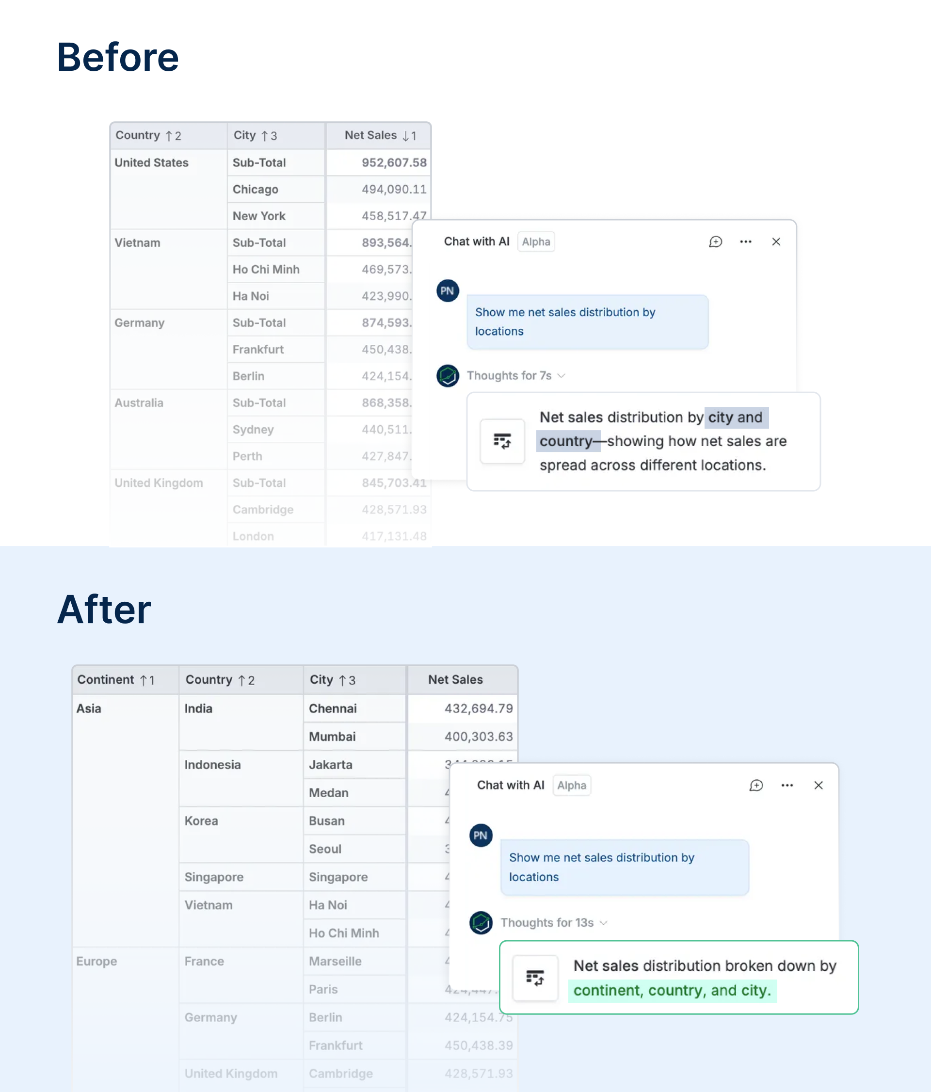 When you customize underlying views for View Underlying Data or breakdown groups for Drill Down, you not only improve the end-user experience, you also give AI more signal.