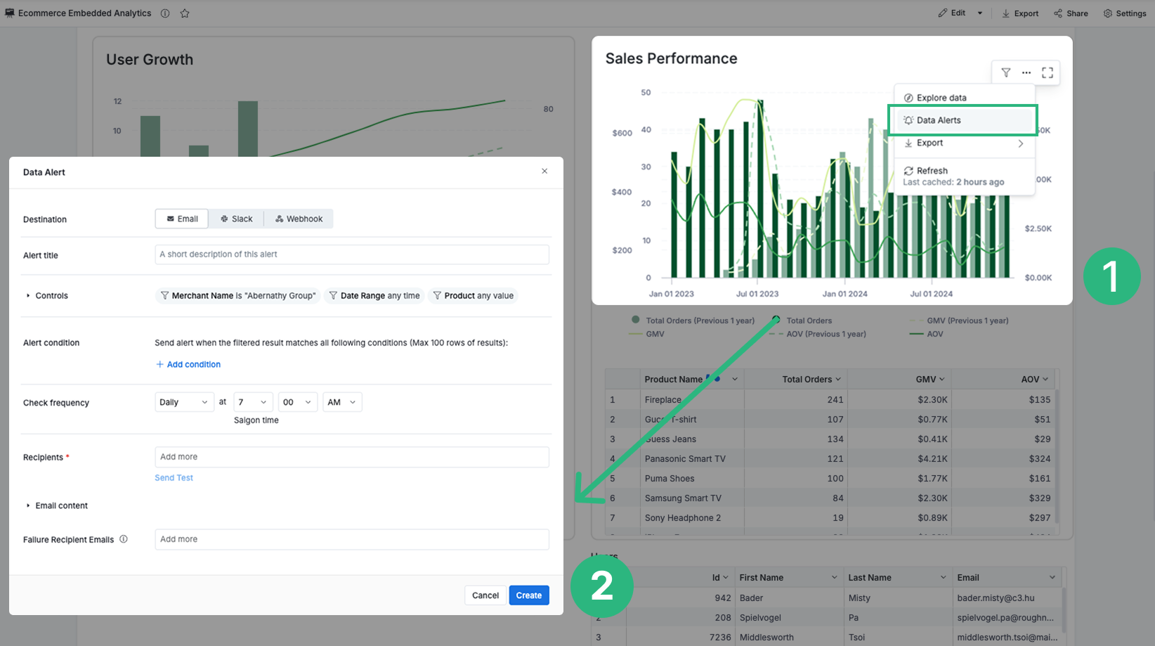Data Alerts allow users to receive automatic notifications when the data meets certain conditions, so they can make timely and strategic decisions for their business.